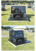 Daisuke26:日高家 26歳の若さで亡くなった息子さんの“生きた証”が、ご両親の願いとコンセプトでした。故人のお仕事とされたテレビマン、石塔にはその象徴としてブラウン管を象り、そこにはご両親のお気持ちが込められています。お墓全体は、その仕事を始める きっかけともなったガンダムの母艦ホワイトベースがモチーフになり、そこには仕事に使った台本・マイク・ペン、好きだったコーラのオブジェが添えられてい ます。